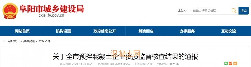 根據(jù)《阜陽市工程運輸車輛專項整治工作方案》部署,阜陽市城鄉(xiāng)建設(shè)局于2023年10月11日起,在全市范圍內(nèi)開展了預拌混凝土專業(yè)承包企業(yè)資質(zhì)監(jiān)督核查,現(xiàn)將核查結(jié)果通報如下。