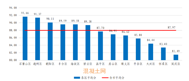1.現(xiàn)場評估得分情況。四季度評估現(xiàn)場檢查全市平均得分為87.97分。其中,石景山區(qū)(平均分91.66分)、通州區(qū)(平均分91.37分)和朝陽區(qū)(平均分90.11分)企業(yè)平均分較高,延慶區(qū)(平均分81.49分)、懷柔區(qū)(平均分83.40分)和大興區(qū)(平均分84.44分)企業(yè)平均分較低。各區(qū)企業(yè)現(xiàn)場檢查平均分見圖1。