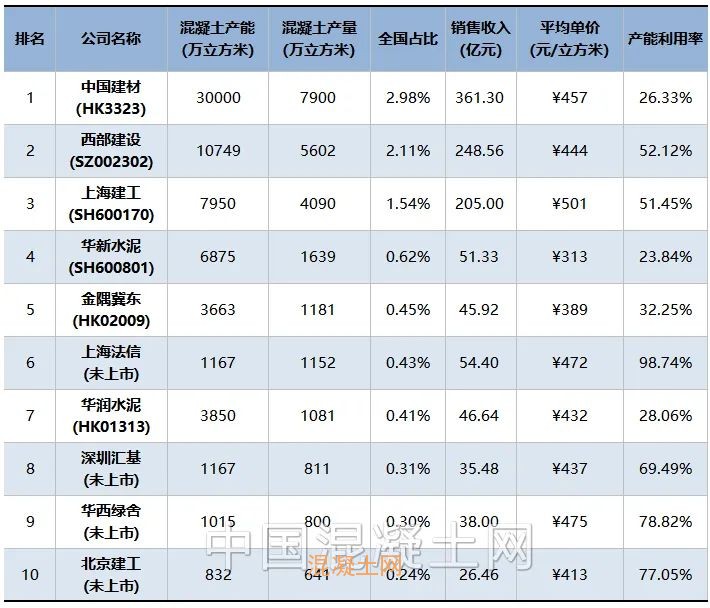 中國商品混凝土十強企業