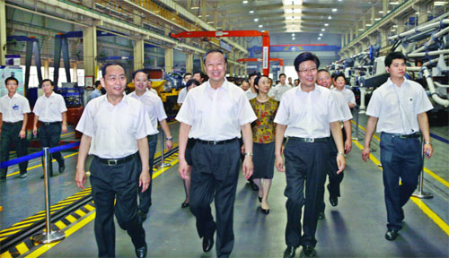 7月24日,全國政協副主席、中央統戰部部長杜青林一行在湖南省委書記張春賢,省委常委、省委統戰部長李微微,長沙市市長張劍飛的陪同下參觀考察了中聯重科。