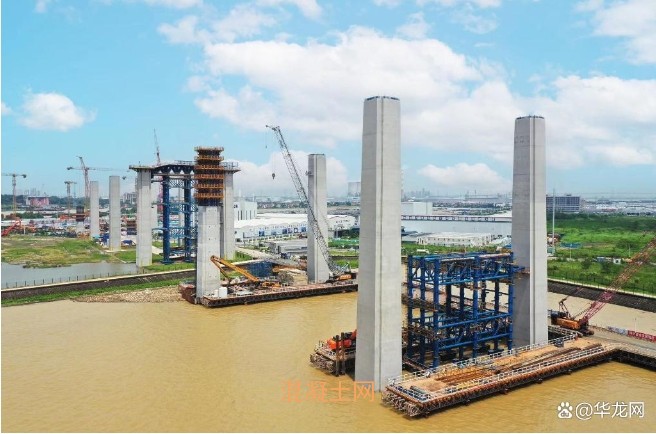 其中,獅子洋大橋索塔采用鋼殼混凝土組合橋塔,塔高342米,也是世界上最高的同類型橋塔,單個橋塔由62個節段和6道鋼橫梁構成。
