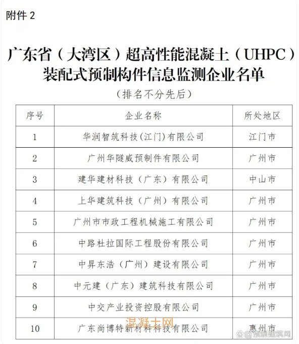 2.廣東?。ù鬄硡^(qū))超高性能混凝土(UHPC)裝配式預(yù)制構(gòu)件信息監(jiān)測(cè)企業(yè)名單