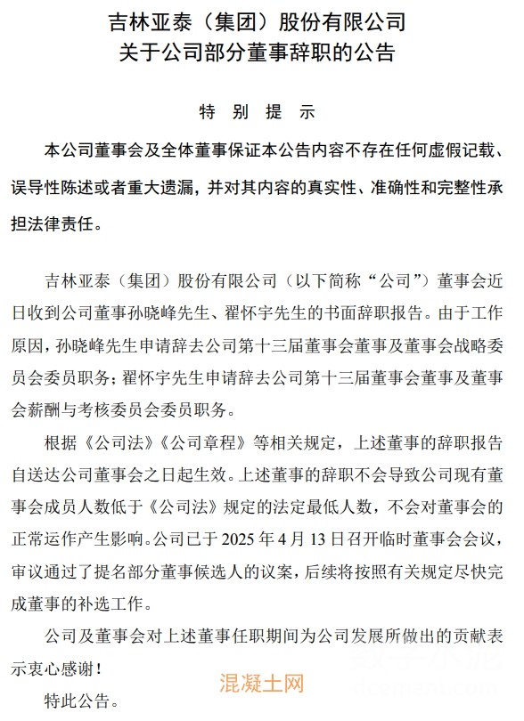 4月13日晚間,亞泰集團發布公告顯示,公司收到董事長宋尚龍,董事孫曉峰、翟懷宇,監事會主席陳繼忠、監事會副主席張秀影女士及監事陳亞春先生的書面辭職報告。