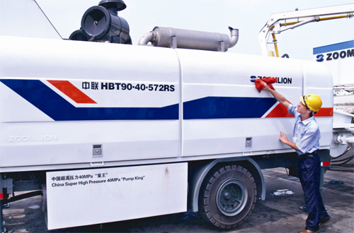 由于該項(xiàng)目施工難度高,對混凝土泵送設(shè)備的質(zhì)量和性能也要求極嚴(yán)。深圳市京基集團(tuán)經(jīng)過對多家生產(chǎn)廠家考察及洽談后進(jìn)行了綜合實(shí)力對比,了解到了中聯(lián)重科在行業(yè)中超強(qiáng)的實(shí)力,尤其對“西塔泵”曾經(jīng)創(chuàng)造的輝煌印象深刻。經(jīng)過認(rèn)真研究討論,最終確定與中聯(lián)重科簽定了2臺HBT90•40•572RS超高壓混凝土泵及4臺布料機(jī)的合同。