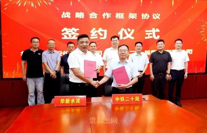 7月23日,中鐵二十局黨委常委、副總經理張文峰,副總經理陳耀華在西安總部,會見到訪的華新水泥股份黨委常委、副總裁杜平一行,雙方進行了座談交流并簽訂戰略合作框架協議。