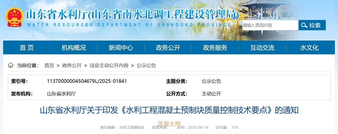 為進一步加強水利工程混凝土預(yù)制塊抗凍融等質(zhì)量控制,確保工程質(zhì)量安全,山東省水利廳組織編制了《水利工程混凝土預(yù)制塊質(zhì)量控制技術(shù)要點》,全文如下: