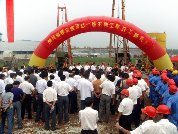 8月的淮安,持續的高溫后,江淮大地已普遍進入了雨季,綿綿的細雨也為這個季節增添了特有的情趣。2009年8月20日,淮安楚州海螺現場彩旗飄揚,燈籠高掛,到處呈現出一片喜氣洋洋的場面,廠區內懸掛的“搶時間抓進度 嚴質量 確保項目早日竣工投產”、“熱烈祝賀楚州海螺水泥項目一期工程順利開工”等巨幅標語隨風飄揚,氣勢壯觀。 上午10時許,楚州區四套班子代表先后來到淮安楚州海螺一期項目現場祝賀,隆重慶祝淮安楚州海螺一期項目主體工程開工。