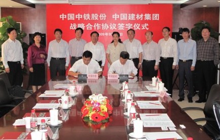 9月10日,中國建筑材料集團有限公司與中國中鐵股份有限公司在中國建材集團總部簽署戰略合作框架協議。中國建材集團總經理、黨委副書記姚燕,中國中鐵董事長、黨委書記石大華出席簽字儀式。中國建材集團副總經理郭朝民、中國中鐵副總裁戴和根代表雙方在協議上簽字。