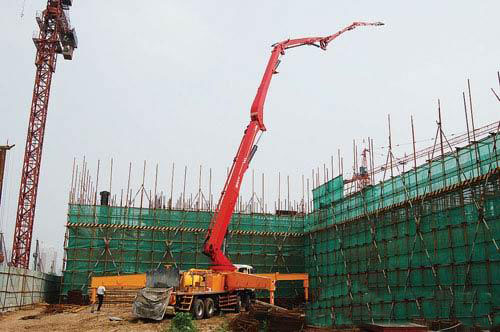 三一泵車到達施工現場后,輕松展開臂架,定點輸送混凝土,良好的表現立即贏得了建筑施工單位的好評。眾多商品混凝土行業客戶聞訊后,紛紛趕到工地一睹三一泵車的風采,通過現場參觀和聽取施工方的使用情況介紹,不少客戶表達了購買意向。