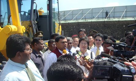 9月26日,在斯里蘭卡首都科倫坡市獨立廣場,戰后重建工程第一批設備交接儀式在此隆重舉行。斯里蘭卡巴茲爾·拉賈帕克薩(BASIL RAJAPAKSA·MP)主席、陸軍司令雅加·拉賈蘇瑞亞(JAGATH JAYASURIYA)、中國駐斯里蘭卡大使館大使楊秀萍,徐工集團董事長王民,徐工進出口公司總經理沙先亮及斯里蘭卡政府部門人員和中國企業代表出席了交接儀式。