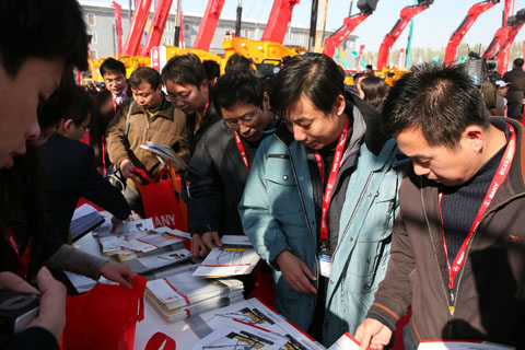 參加此次展會(huì)的有來自中國、美國、德國、英國、日本、韓國等國的900多家展商,特雷克斯、小松、斗山、現(xiàn)代、三一、徐工、中聯(lián)、柳工、山推、玉柴、福田、神鋼等國內(nèi)外知名企業(yè)同臺競技。三一集團(tuán)旗下混凝土機(jī)械、路面機(jī)械、起重機(jī)械、挖掘機(jī)械、樁工機(jī)械五大類產(chǎn)品亮相展會(huì),47臺產(chǎn)品、5850平米的參展面積,為所有參展企業(yè)之最,展出了三一自主創(chuàng)新的強(qiáng)大實(shí)力,以及三一締造世界最高品質(zhì)產(chǎn)品的決心。透過展會(huì),我們也能看到三一平穩(wěn)過度本輪經(jīng)濟(jì)危機(jī)、抓住機(jī)遇迎發(fā)展的信心。