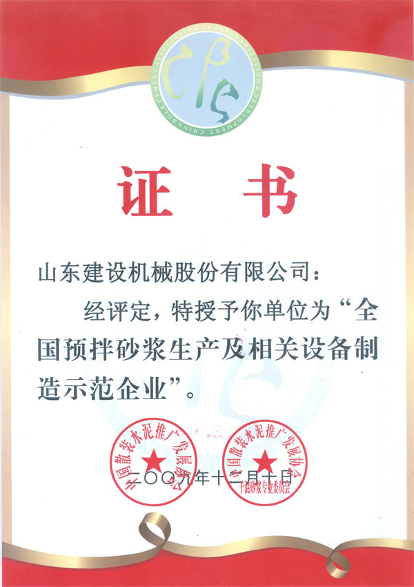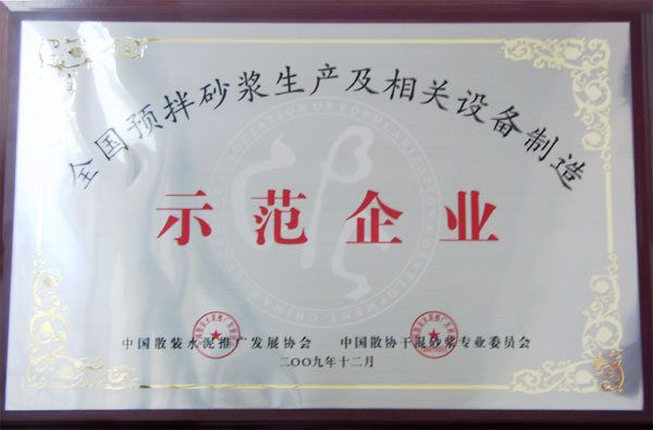 全國最終評出“認定企業”22家,“示范企業”23家,并在中國散裝水泥推廣發展協會年會上進行了授牌。山東建友機械公司被授予“全國預拌砂漿生產及相關設備制造示范企業”,為山東建友機械公司推廣干混砂漿設備,開拓干混砂漿設備市場創造了有利的條件。