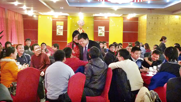 于是,這場由工會組織,技術部主辦的婚禮如火如荼地進行著:由分工會主席涂凌志牽頭的婚禮籌備組,包下了整體策劃的工作,他們把所有工作安排得井井有條,簡直讓專業的婚慶公司都“自嘆不如”。婚禮主持就由同事萬曉擔任,身穿大紅夾襖的萬曉架勢十足,妙語如珠、風趣幽默,儼然一位“資深”的婚慶主持。在她的“頻頻進攻”下,靦腆的新郎新娘臉紅耳熱,毫無招架之功,很快就放棄了“掙扎”,在同事們熱烈的掌聲中秀出了他們的甜蜜與恩愛,引得臺下的觀眾歡笑陣陣。