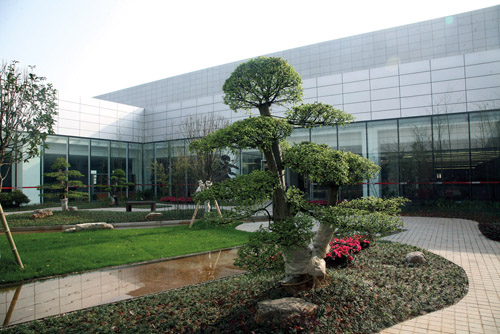 在辦公區的布置中,“人性化”這一主題貫穿在每一個細節中。由于屆時將有上千人在這里辦公,為了巧妙布置,使得這里“繁而通透”,共有5個設在辦公中心區域的會議室被拆除,并先后設立了2條直貫東西的大通道和3條南北通道,站在通道口一眼望過去,只見一排排辦公桌整齊劃一,如士兵一般列隊而立,通道的盡頭,遠遠地可見到花園里提拔的松柏和輕拂的細竹。另外,辦公區采用的是從天花板反射的間接光源,光線更柔和,辦公時,光線對眼睛的傷害會被降到最低。而一盆盆綠意盎然的植物,也成為辦公室一角充滿自在生機的獨立世界。