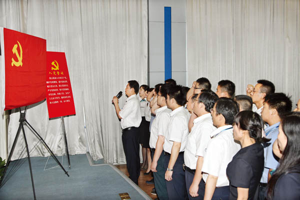 2009年至2010年以來新發(fā)展的新黨員在公司黨群工作部部長王旭虹的帶領(lǐng)下,面對鮮艷的黨旗莊嚴(yán)宣誓,光榮的成為了中國共產(chǎn)黨中新的一員。
