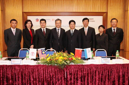 天津院總經理徐培濤與HUME Cement 有限公司執行董事Quah Thain Khan 分別代表雙方在合同上簽字。豐隆工業總裁郭令山、中國銀行馬來西亞分行行長鄭經伯,天津院國際業務部副部長孫海泉、工藝設計研究所所長郭天代等參加了簽字儀式。