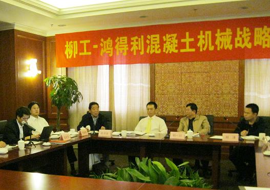 10月25日至26日,柳工-鴻得利混凝土機械戰略發展研討會在江蘇啟東市先豪大酒店三樓會議室召開,柳工集團總裁楊一川、副總裁鄭津、柳工鴻得利董事長徐沛良以及集團與柳工鴻得利高層領導參加了會議,會議由楊一川主持。