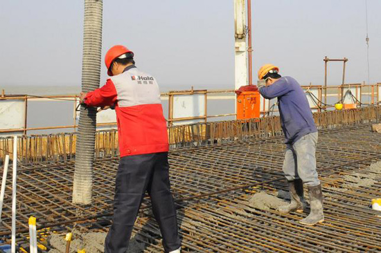 崇啟大橋橋梁的施工項目采用主跨185米的六跨鋼連續(xù)梁橋的設(shè)計方案,其跨度和聯(lián)長為國內(nèi)同類橋型第一,是一項展現(xiàn)我國橋梁建設(shè)技術(shù)水平的重大工程。向此項目提供泵送設(shè)備的廠家非常多,由于鴻得利泵車品質(zhì)優(yōu)良,服務周到,故而不僅贏得了施工方上海建工集團的認可,并在之后的施工中讓客戶頻頻豎起大拇指,客戶表示在今后的施工項目中定會首先考慮柳工鴻得利的設(shè)備。