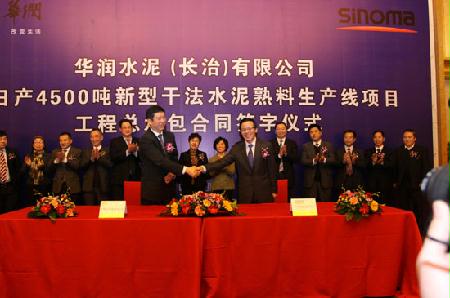 近日,中材集團中國中材國際工程股份有限公司天津分公司與華潤水泥控股有限公司在北京簽署了山西長治日產4500噸新型干法水泥熟料生產線項目工程總承包合同,合同金額暫定為5.8128億元。這是中材國際天津分公司成立后承接的第一個工程大單,也是華潤水泥第一個水泥工程總承包項目。