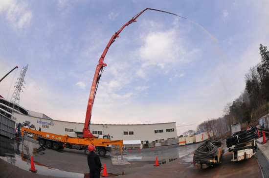 該臺泵車是3月24日上午到達日本大阪港的,在設備到達日本后,三一重工三名工程師對設備進行檢查、確認后,在警車護送下前往千葉縣培訓場。3月25日、26日兩天,三一服務工程師對東京電力操作人員進行緊急培訓,并進行模擬打水測試。3月27日上午,在完成泵車管路緊固以及底盤和上裝的全面檢查后,泵車離開千葉訓練場,開赴最后的目的地——福島第一核電站。