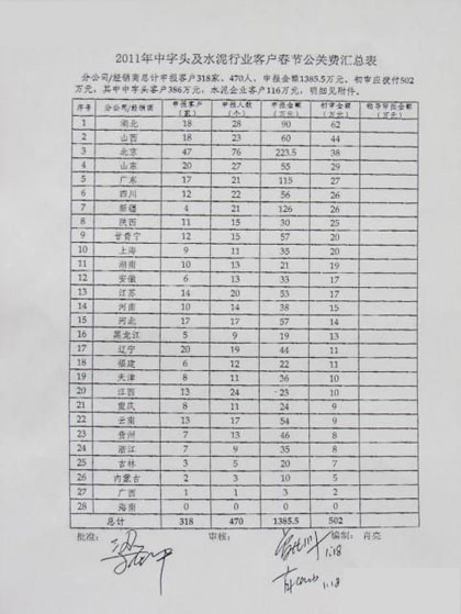 另一份春節公關費匯總表顯示,分公司/經銷商總計申報客戶318家、470人,申報金額1385.5萬元,初審應撥付502萬元,其中中字頭客戶386萬元,水泥企業客戶116萬元。文件批準人簽字為“梁X中”(中間一字看不清)。根據資料顯示,三一重工董事長梁穩根的兒子為梁在中,畢業于英國華[0.19-5.47%]威大學,現任三一集團有限公司副總裁、財務總監。
