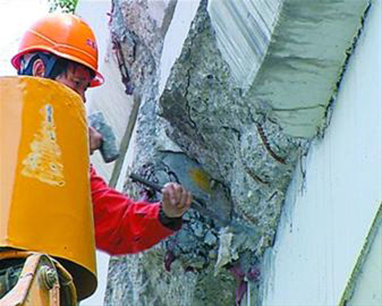 不過,在隨后的清理過程中,令人詫異的事情發生了。記者看到,不時有一塊塊紅色氈布從破損處被鑿出,在一片混凝土中顯得特別醒目。胡先生說,虹翟高架今年3月16日才剛剛通車,而之前在橋另一側的防撞墻上也曾發現過裂縫:“是不是防撞墻的施工中存在質量問題,這個我們不好說,需要進一步認定。”目前,相關部門仍在對事故原因進行調查。
