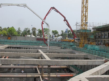 城市建設分公司聯水路拌站自4月下旬接到華西股份有限公司澆注羅店樞紐(二期)人防工程大體積混凝土通知后,站領導組織攪拌站相關部門負責人對該工地進行了實地考察并和項目負責人進行了溝通,全面了解項目部對此次大體積混凝土澆注任務的技術措施和相關要求。4月28日,拌站領導召開了羅店交通樞紐大體積混凝土澆注任務工作協調會,會上站領導對此次混凝土澆注任務精心組織、嚴密布置,并要求各部門要站在公司的高度充分重視、全力確保此次羅店交通樞紐人防工程基礎底板大體積混凝土澆注任務順利完成。為保證此次大體積混凝土在生產、原材料供應、運輸、泵送等主要環節上不出問題,聯水路攪拌站還制訂了詳細周到的生產、運輸計劃。