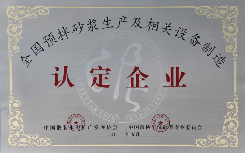 近日,由新疆自治區散裝水泥辦公室、烏魯木齊散辦審核推薦,經中國散裝水泥推廣發展協會、中國散協干混砂漿發展委員會組織專家考察審定,授予新疆西部建設股份有限公司所屬西部卓越建材有限公司“全國干混砂漿生產及相關設備制造認定企業”牌匾及資格證書。至此,西部卓越建材公司成為第二批獲得全國預拌砂漿生產及相關設備制造認定的企業。