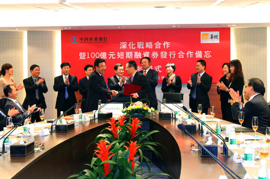 自華潤與農業銀行建立戰略伙伴關系以來,雙方的業務合作范圍不斷擴大,從最初的電力板塊,逐步擴展到房地產、水泥、啤酒、醫藥、零售、燃氣、微電子等業務板塊;合作領域不斷拓展,從傳統的存貸款業務拓展至直接債務融資、現金管理、信托、金融同業等新興業務領域;合作力度不斷加強,授信額度持續翻番,用信額度逐漸加大,直接融資金額迅速增長。銀企雙方已建立起穩固的戰略合作關系和長久而深厚的友誼。