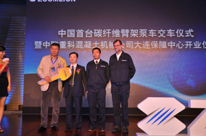 編者按:11月18日,大連經(jīng)濟(jì)技術(shù)開(kāi)發(fā)區(qū)永興建材有限公司董事長(zhǎng)孫永革從中聯(lián)重科混凝土公司東北大區(qū)經(jīng)理吳飛紅中接過(guò)了中國(guó)第一臺(tái)碳纖維62米長(zhǎng)臂架泵車(chē)的金鑰匙。這標(biāo)志著碳纖維長(zhǎng)臂架泵車(chē)首次落戶(hù)中國(guó)市場(chǎng),中國(guó)泵車(chē)應(yīng)用史至此掀開(kāi)了嶄新的篇章。中國(guó)混凝土泵車(chē)用戶(hù)再次享受到中聯(lián)重科技術(shù)產(chǎn)品創(chuàng)新的盛果,享受到碳纖維臂架泵車(chē)為用戶(hù)帶來(lái)的全新價(jià)值體驗(yàn)和增值服務(wù)。“中聯(lián)重科混凝土機(jī)械公司副總經(jīng)理陽(yáng)昌康”、大連混凝土行業(yè)協(xié)會(huì)會(huì)長(zhǎng)陳剛和“遼寧地區(qū)”混凝土客戶(hù)共同見(jiàn)證。 |