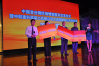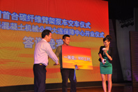 永興建材有限公司董事長(zhǎng)孫永革從中聯(lián)重科混凝土機(jī)械公司東北大區(qū)經(jīng)理吳飛紅手中接過(guò)金鑰匙
