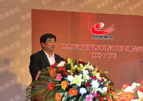 慶典活動在喜慶、祥和的氣氛中拉開序幕,中建新疆建工(集團)有限公司常務副總經理(主持工作)、新疆西部建設股份有限公司黨委書記、董事長徐建林代表西部建設致歡迎詞。徐總簡要回顧了西部建設十年來取得的驕人業績:從9條傳統生產線發展至如今的46條國內先進、環保的生產線;年產量由100萬立方米增長到600萬立方米;營業收入由2.9億元增長到21億元;總資產由2.04億元增長到23.52億元;公司已在疆內外十五個城市設點布局,下轄三家分公司、十一家子公司和三家分公司;“西建”牌混凝土被評為新疆名牌產品,公司多次獲得“中國混凝土優秀企業”和“中國建材行業五百強”稱號,并成為中國資本市場上唯一一家混凝土上市企業。在公司成立十周年慶典之際,徐總向長期以來關心、支持并推動西部建設事業健康發展的自治區黨委、自治區人民政府各級領導;向十年來信任、認可并選擇西部建設的廣大客戶,為西部建設提供幫助和支持的合作伙伴及社會各界人士,為西部建設的成長進步給予大力支持的新疆建工歷任領導;向辛勤工作、愛崗敬業、拼搏進取的西部建設全體員工,表示了最誠摯的感謝和深深的敬意,并表示未來西部建設將站在中國建筑巨人的肩膀上,創造出無愧于歷史,無愧于時代的光輝業績。