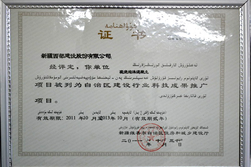 近日,科研檢測公司研發(fā)的新產(chǎn)品—現(xiàn)澆泡沫混凝土以優(yōu)異的產(chǎn)品性能指標(biāo)和完善的施工工藝順利通過了由自治區(qū)建設(shè)廳、經(jīng)信委組織的專家鑒定,獲得自治區(qū)建設(shè)廳和經(jīng)信委頒發(fā)的“雙證”—《自治區(qū)新產(chǎn)品鑒定證書》和《自治區(qū)科技成果推廣證書》,為公司在新型建筑保溫材料領(lǐng)域成功開拓市場邁出了第一步,也是公司取得的第八項(xiàng)自治區(qū)級新產(chǎn)品成果鑒定。