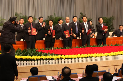 1月11日上午,第三屆山東省省長質量獎頒獎大會在省政府禮堂隆重舉行,山東省委副書記、省長姜大明,省委常委、副省長王軍民,國家質檢總局副局長魏傳忠,省人大常委會副主任尹慧敏、省政協副主席王乃靜出席會議并頒獎。在揭曉的“2011年度山東省省長質量獎企業獎”名單上,西王集團榜上有名,是濱州市唯一獲得該獎項的企業。西王集團董事長王勇出席頒獎大會,并上臺領獎。