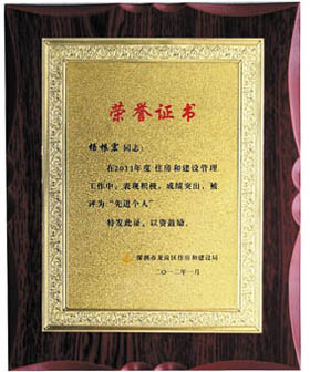 2012年1月11日,為海集團被深圳市龍崗區住房和建設局評為2011年度建材行業“先進單位”。同時,為海集團總裁楊根宏因在2011年度住房和建設管理工作中,表現出色,成績優異,被評為“先進個人”。