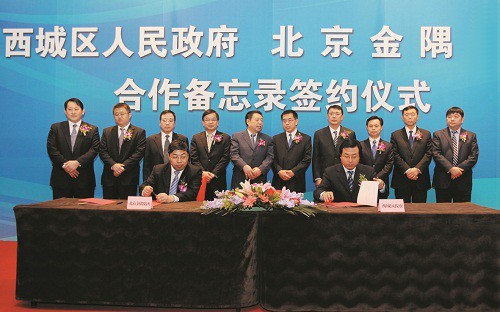 2月1日,北京金隅與北京西城區政府在金融街威斯汀酒店簽署《合作備忘錄》。雙方經友好協商,達成關于辦公樓宇置換、土地資源開發等多項共識。北京金隅黨委書記、董事長蔣衛平,總裁姜德義,北京西城區區委書記王寧,區委副書記、區長王少峰,常務副區長蘇東,區委常委、區委辦主任郭懷剛,區人大副主任、金融街投資集團董事長王功偉,副區長李巖等出席簽字儀式。