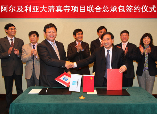 2月29日,由中建阿爾及利亞分公司和中建三局組建聯營體共同實施的世界第三大清真寺——阿爾及利亞大清真寺項目聯合總承包簽約儀式在阿首都阿爾及爾喜來登大酒店隆重舉行。中建阿爾及利亞分公司總經理陳文健和局總經理易文權分別代表雙方在協議書上簽字。