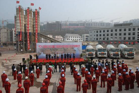 2011年5月混凝土部按照集團公司統一部署,與各參建施工單位一道,第一時間奔赴綏江,最先開始攪拌站的籌建工作。由于工程時間短、任務重、體量大,項目部克服了重重困難,在綏江施工現場,采取租用和自主建設的方式,短期內建成了5條生產線,完善了供電、供水管路,制定了砂石料、水泥、外加劑等物資的采購制度、生產過程中嚴格貫徹執行公司的質量、環境、職業健康安全一體化管理體系,保證工程質量和生產安全;同時項目部全體人員以攪拌站為家,努力拼搏、勇于擔當、敢于亮劍,抱著來之能戰、戰之必勝的堅定信念,在較短的時間內解決了供應能力與生產計劃的矛盾、人員和設備的雙重磨合、現場施工項目多、協調難度大等等的問題,扭轉了前期的被動供應局面。為了讓移民工程建設更加順利、更有保障,在指揮部、A區項目部的支持下,僅用了20天又建成了A區攪拌站,調集了熟練工人,迅速實現了日產8000立方的生產能力,在組織上加強了領導,由部劉副總駐點,梳理管理流程,保證混凝土的及時供應,做好服務工作,滿足施工需求。為了更好的完成后面的任務,交給集團、指揮部一份滿意的答卷,慶典上項目向全體職工發起了安全生產、誠信經營、勞動競賽倡議,號召大家文明經營、誠信經營,深入貫徹“安全第一、預防為主、綜合治理”的安全生產方針,掀起“比、學、趕、拼、超”的熱潮,為實現商品混凝土綏江項目部生產目標而努力。