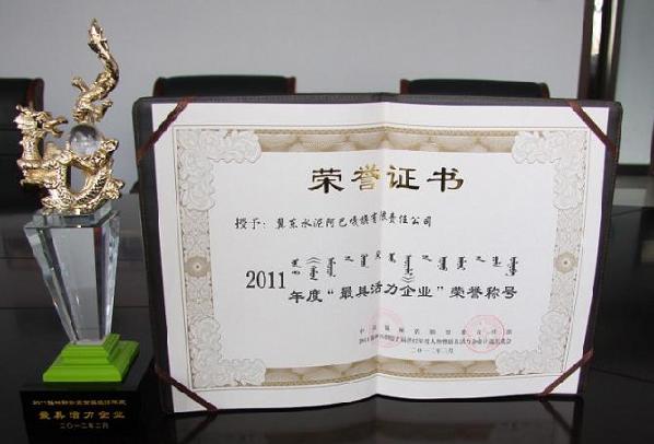 2012年3月29日,2011年錫林郭勒盟首屆“國電錫林河杯”經(jīng)濟(jì)年度人物暨最具活力企業(yè)頒獎盛典在蒙元文化苑盛大舉行。冀東水泥阿巴嘎旗公司榮獲“2011錫林郭勒盟最具活力企業(yè)”稱號。