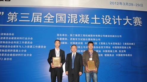 3月28日,“徐工杯”第三屆全國(guó)混凝土設(shè)計(jì)大賽在北京展覽館拉開(kāi)帷幕,這次大賽是由中國(guó)國(guó)際貿(mào)易促進(jìn)委員會(huì)建筑材料行業(yè)分會(huì)聯(lián)合主辦,由中國(guó)混凝土與水泥制品協(xié)會(huì)科技工作委員會(huì)、教育與人力資源委員會(huì)和預(yù)拌混凝土分會(huì)共同組織,大賽吸引了來(lái)自全國(guó)各地的55家混凝土企業(yè)的技術(shù)人員與31家大學(xué)的青年學(xué)生前來(lái)參加。集團(tuán)總工程師鄧明超率隊(duì)名和團(tuán)隊(duì)經(jīng)角逐榮獲企業(yè)組第一名。
