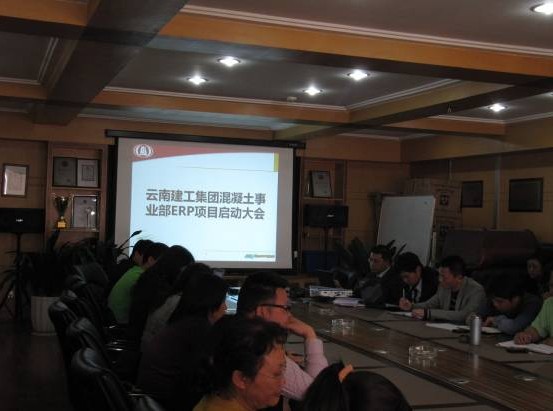 混凝土部信息化分管副總經理吳坤在會上做了動員講話,并宣布了成立ERP項目組的決定,設備信息科為信息化建設的職能部門。軟件開發方蘇州迪晟軟件公司ERP實施顧問分別介紹了云南建工集團有限公司商品混凝土部ERP建設總體情況,實施步驟,實施時間計劃和實施過程的要求。同時,各參與部門負責人在動員會上做了表態發言,表示全力參與配合ERP建設工作。