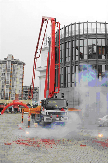 在普茨邁斯特介紹完新產品和2012年的服務政策后,與客戶舉行了普茨邁斯特M38泵車的交機儀式并且做了現場演示。操作人員一邊演示一邊給參會嘉賓展示了普茨邁斯特的產品的優越性,特別是從沒有見過普茨邁斯特產品廬山真面目的客戶,大呼大飽眼福。經過這次面對面的交流,加上這普茨邁斯特新的服務政策的出臺,堅定了客戶購買德國大象產品的信心。通過本次展示會,我們增強了閩北區客戶對大象的產品的購買意向。