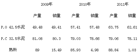 表2:東吳水泥2009年--2011年產銷量(萬噸)