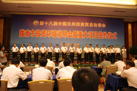 2012年7月7日,甘肅省蘭州市第十八屆中國蘭州投資貿(mào)易洽談會——隴南市投資環(huán)境說明會暨重大項目簽約儀式在蘭州舉行,集團常務副總裁趙衛(wèi)忠應邀出席簽約儀式。