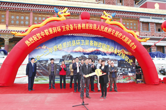日前,香格里拉縣與中聯重科環衛裝備融資租賃設備交接儀式在壇城廣場舉行。香格里拉縣委等部門和中聯重科有關領導共同參加了儀式。