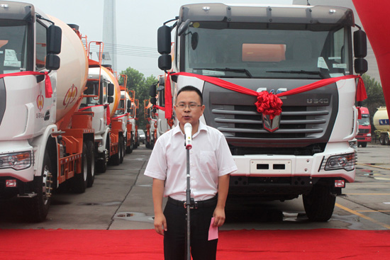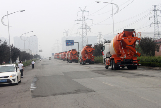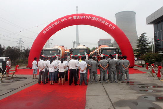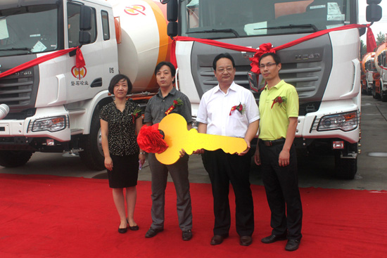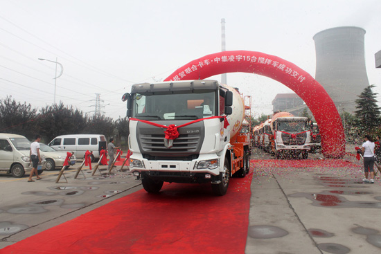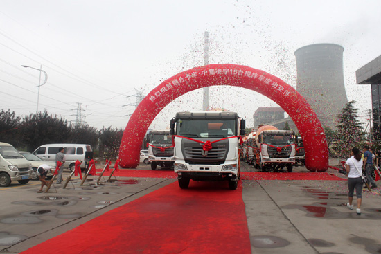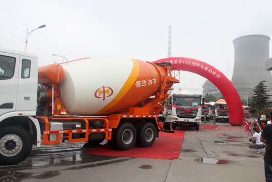 2012年8月1日,在洛陽中集凌宇汽車有限公司的廣場上,15臺帶著大紅花的攪拌車氣勢不凡,排著整齊的隊伍整裝待發。該批攪拌車是中集凌宇的老客戶——洛陽磐石科技混凝土有限公司定購的,底盤采用國內重卡的新銳——聯合卡車的底盤,上裝是中集凌宇13方罐體,據悉,磐石商砼幾年來已經先后采購了50多臺中集凌宇的攪拌車。