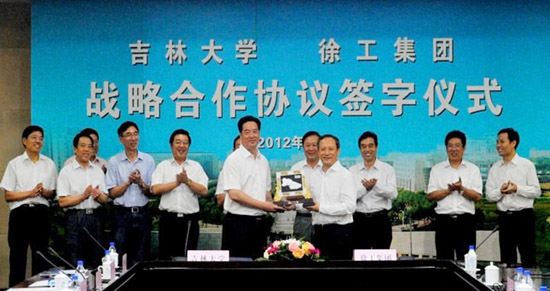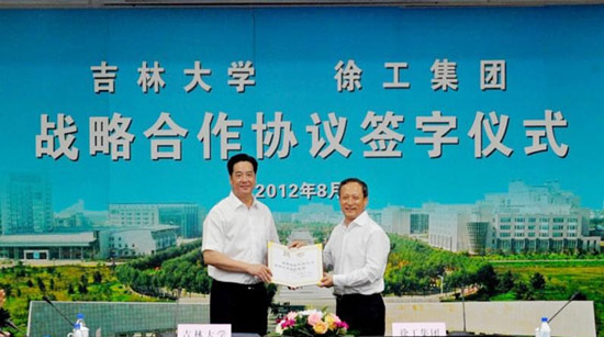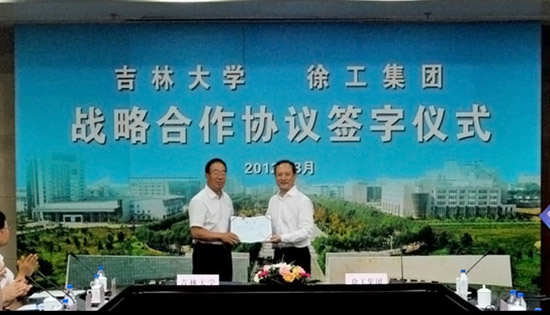 8月10日,徐工集團與吉林大學戰(zhàn)略合作協(xié)議簽字儀式在吉大中心校區(qū)東榮會議中心隆重舉行。徐工集團董事長、總裁、黨委書記王民,副總經(jīng)理、黨委副書記李鎖云等企業(yè)高管和吉林大學校長李元元,中國科學院院士任露泉,常務(wù)副校長趙繼,副校長張向東以及相關(guān)部門和學院負責人出席了簽字儀式。王民董事長和李元元校長分別代表雙方簽署戰(zhàn)略合作協(xié)議并為徐工集團----吉林大學工程技術(shù)研究中心揭牌。儀式由趙繼常務(wù)副校長主持。