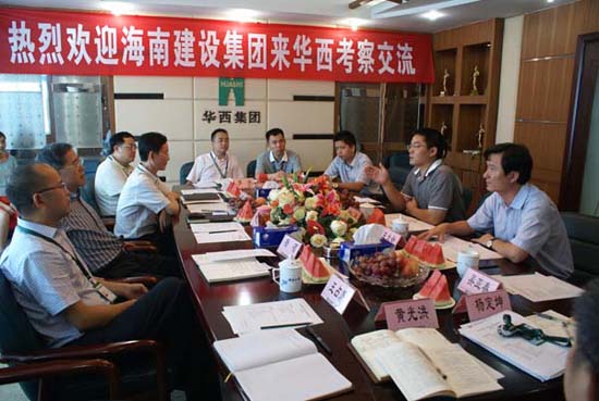 集團總經理楊斌代表集團向海南建設集團介紹了集團情況,他從集團基本情況、近年來的改革發展情況等方面作了詳細介紹。海建股份總經理唐勇對華西集團的發展給予了高度評價,他說華西集團取得的成績和先進經驗值得學習和借鑒。他從海南建設集團的基本情況、改革發展等方面做了詳細介紹。集團總工程師陳躍熙向海南建設詳細介紹了集團“申報特級資質”的過程。