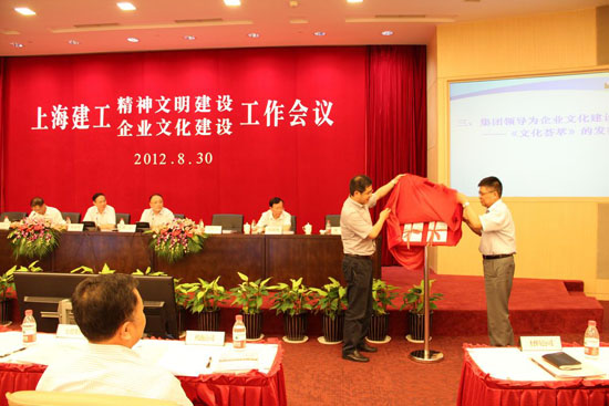 8月30日,上海建工集團召開2012年度精神文明建設暨企業文化建設工作會議。集團黨政領導、各單位黨政負責人、分管領導、集團委派重大項目聯合黨委書記、黨建工作指導員及集團各部門負責同志等200余人參加了會議。集團黨委書記蔣志權出席會議并對進一步做好集團下一階段的企業文化和精神文明建設工作提出要求,集團黨委副書記、董事長、總裁徐征主持會議。會上,與會同志共同觀看了反映集團2011年精神文明建設與企業文化建設成果的錄像片——《百尺竿頭,志存高遠》;集團黨委副書記范忠偉宣讀了集團2011年度精神文明“雙十佳”獲獎名單;集團紀委書記郭雪林和集團副總裁杭迎偉共同為集團企業文化建設成果匯編《文化薈萃》一書的發行揭幕;一建集團、市安裝公司和構件公司王明牛分別在會上作了發言交流,集團黨委宣傳處、企業文化處就關于完善集團理念體系的相關內容進行了解釋說明。
