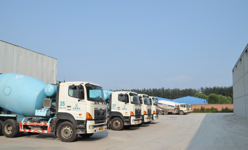 混凝土攪拌車整齊待發(fā)